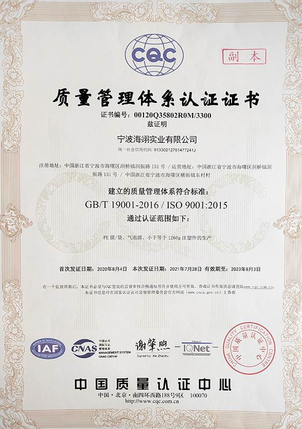 公司已通過(guò)ISO9001質(zhì)量管理體系及《安全生產(chǎn)目標(biāo)管理》的相關(guān)認(rèn)證,嚴(yán)格進(jìn)行品質(zhì)管理,采用一系列先進(jìn)設(shè)備對(duì)產(chǎn)品進(jìn)行管控,為客戶提供質(zhì)量穩(wěn)定的合格產(chǎn)品,公司所有產(chǎn)品都已通過(guò)GP檢測(cè),其環(huán)保方面均符合國(guó)際標(biāo)準(zhǔn)。